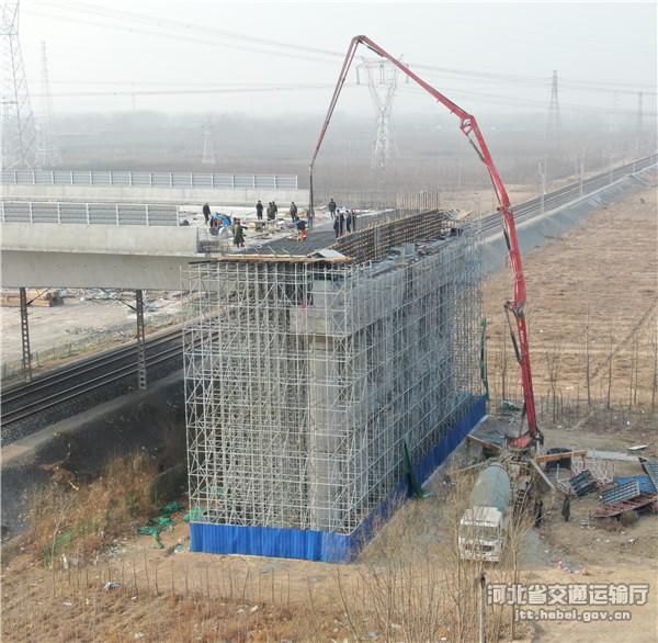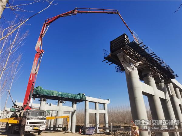 原受高压线影响的ZT6标东淀特大桥引桥断点,经过1个月的突击施工,终于在1月16日完成最后一片盖梁浇筑,标志着东淀特大桥桥梁下部结构工程顺利完工。