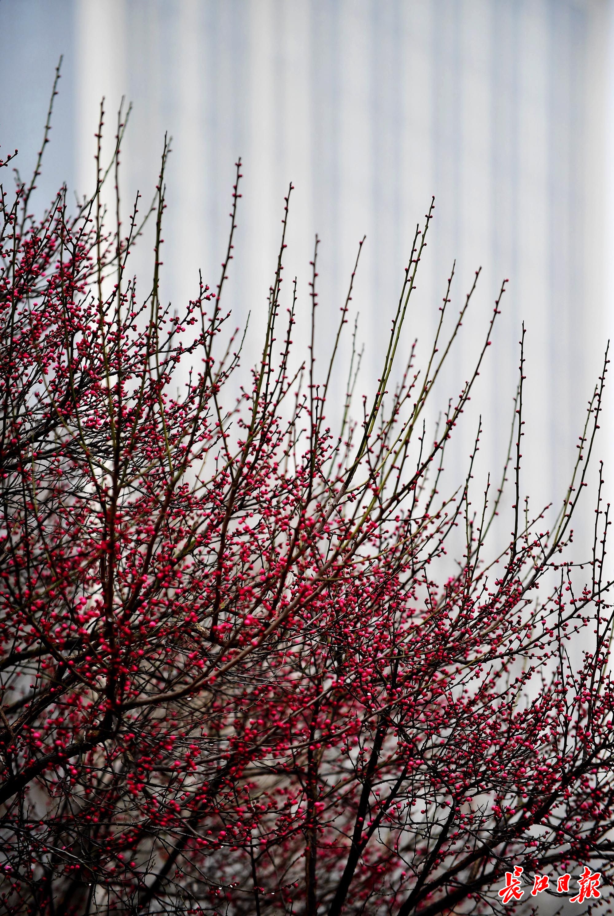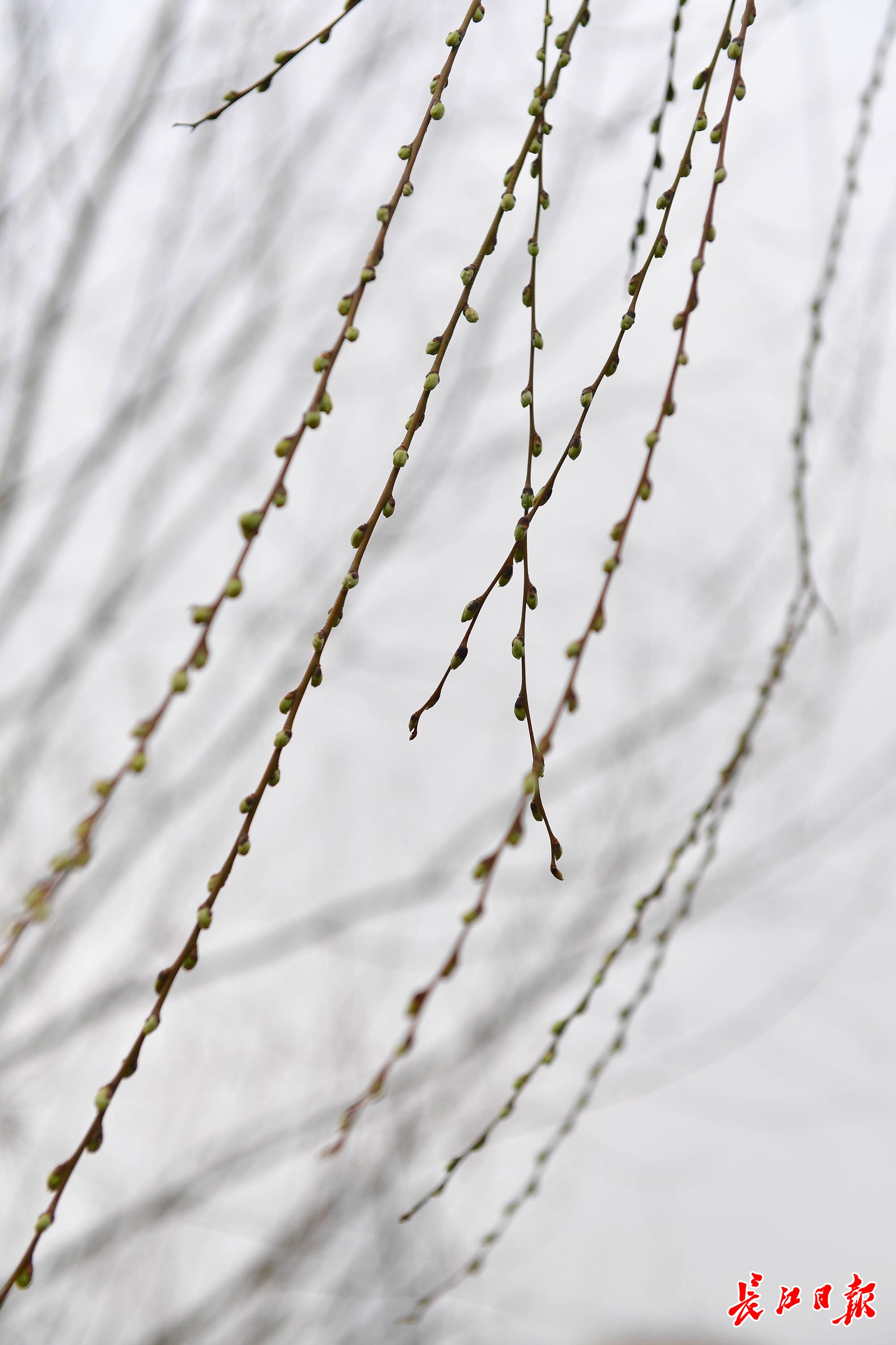 长江网2月1日讯2月1日,武汉东西湖极地海洋公园的湖边,柳树已发出芽苞,透出淡绿。玉兰树的枝头,花苞包裹着银色绒毛。绿萼梅、红梅黢黑的枝干上,也都挤满了圆润的绿色、红色花苞。春的脚步近了。(记者李永刚 摄影报道)