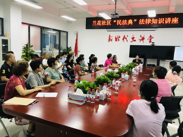 二、配齐法律咨询服务。兰花社区在窗口设置“公共法律服务”专席,一方面为辖区居民和商户提供公共法律服务和支援,普及法律知识,确保辖区居民和商户知法、懂法、守法。另一方面,兰花社区邀请驻点律师向党群服务中心工作人员讲解新政策和新法规,为提高政务服务水平打下坚实的法律基础。