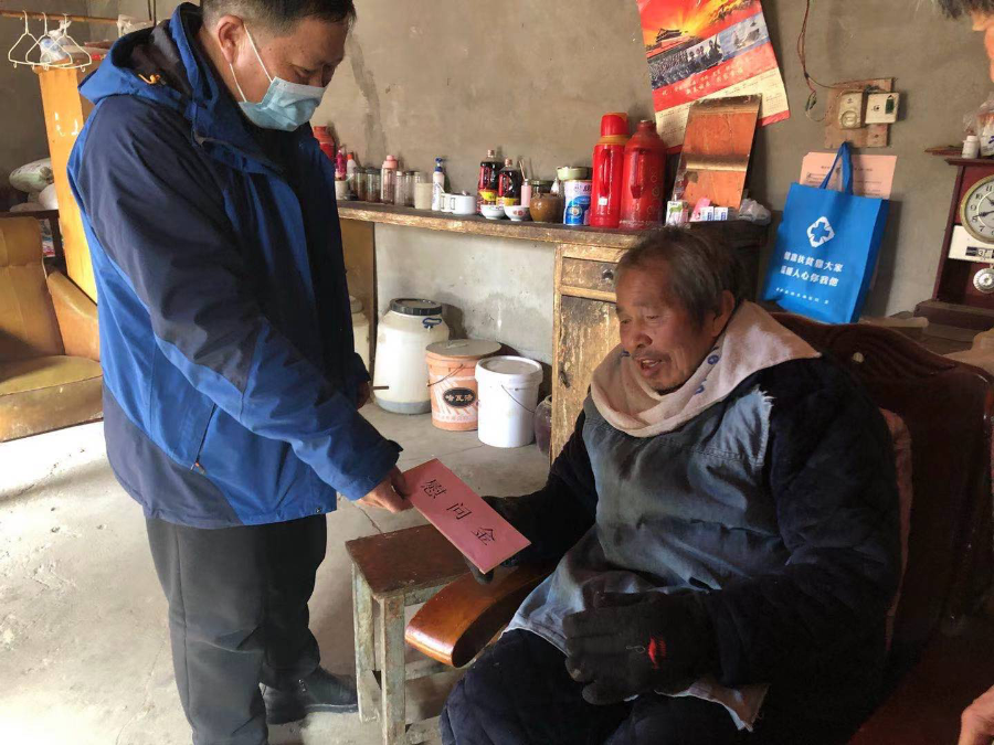 2月3日,在春节即将到来之际,县扶贫局副局长陈仕龙到城关镇走访慰问困难退役军人,向他们送上新春祝福,为每户送去500元春节慰问金,并致以诚挚的问候和衷心的祝福,城关镇党委统战委员崔普利陪同慰问。
