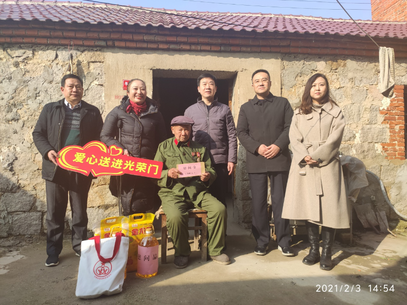 2月3日下午,市退役军人事务局副局长钱培九来我区看望慰问李学周、王秀昌两位特困退伍军人,区政府副区长戴鹏,区退役军人事务局局长赵凯、省爱国拥军促进会成员单位、蚌埠市新东方驾驶培训有限公司董事长昝桂全陪同。