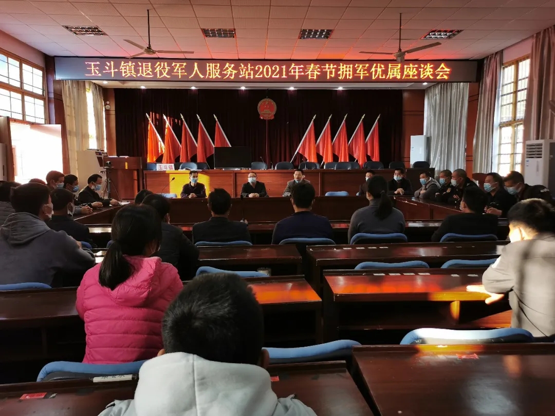 ? 春节将至,为扎实做好拥军优属工作,不断巩固和发展坚如磐石的军政军民团结,在全社会营造尊崇军人职业的氛围。2月3日下午,玉斗镇召开2021年春节拥军优属座谈会,镇党委书记康贤德、镇退役军人服务站成员、退役军人代表、义务兵家属代表等30余人参加会议。