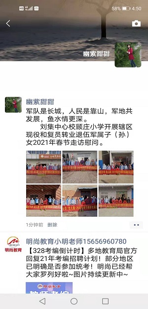 顾庄小学始终把双拥工作当作一项重要工作来抓,通过张贴宣传标语、学校电子屏、微信平台、教师朋友圈等宣传双拥共建工作,大力普及了辖区师生和家长的国防和双拥意识,进一步提高了投身双拥创建活动的积极性。