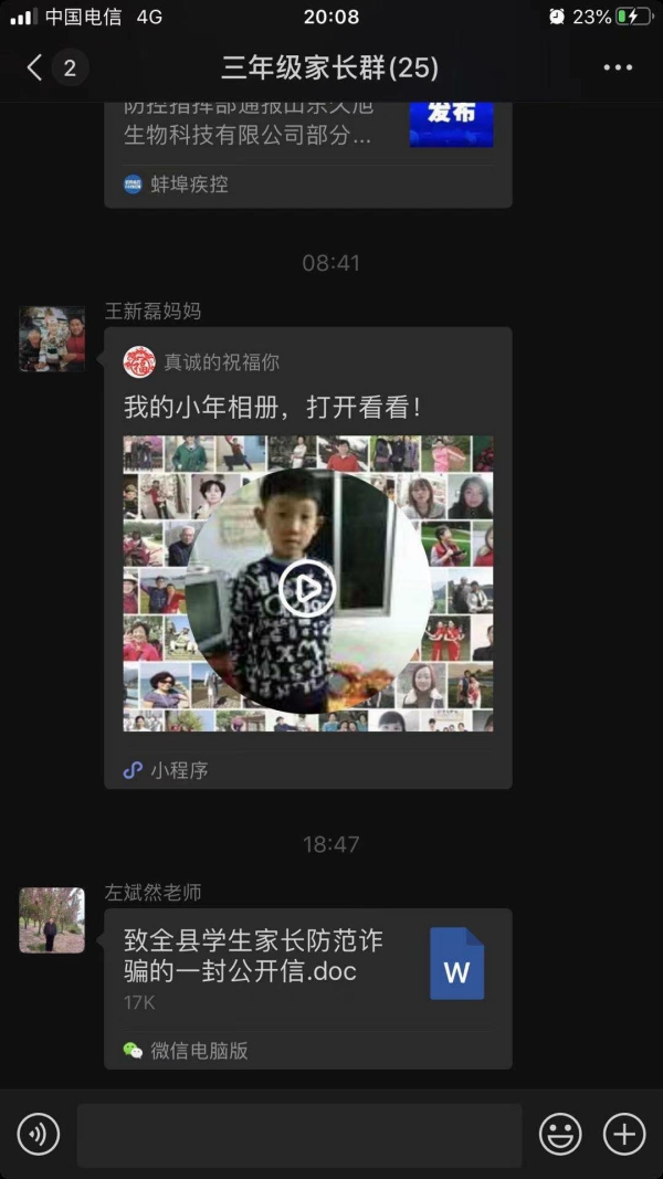 春节临近,电信网络诈骗层出不穷,切实维护人民财产安全。刘集中心校沟拐小学利用微信群,朋友圈等社交软件将《至全县学生家长防范诈骗的一封公开信》进行转发宣传并提出要求。