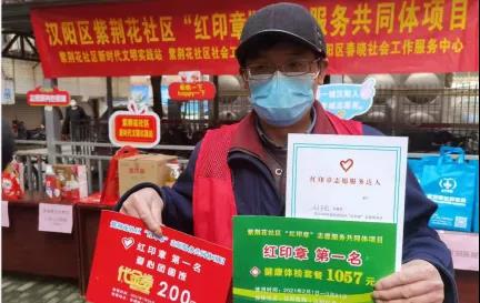 此次“红印章志愿服务达人”第一名的刘正刚除了获得社区办法的荣誉证书之外,还获得了1张健康体检券、200元爱心餐券,代红心也可以拿着志愿服务册,到社区兑换食用油、香米、口罩、药房代金券等物资。社区书记程红军表示“志愿者为社区居民做出了很多贡献,我们也准备了一些物资,希望以爱心回馈爱心,向志愿者表达感谢。这些物资都是社区下沉单位共建单位以及爱心商铺为志愿者免费提供的暖心年货,也是助力汉阳打造志愿服务之城。”