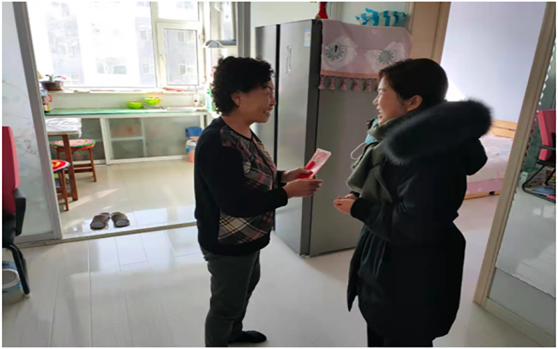 “蔡叔,社区和住建局领导来看你们了。”“朱姨,咱们县科协领导年前来看望您了。”从1月下旬开始,绿江社区党组织书记联系各单位在职党员陆续来到社区贫困户家中,为他们送去米、油、果蔬、口罩、消毒液等生活、防疫物资,细致嘱咐他们出门要记得戴口罩,常消毒多洗手,有任何需要及时和社区联系。