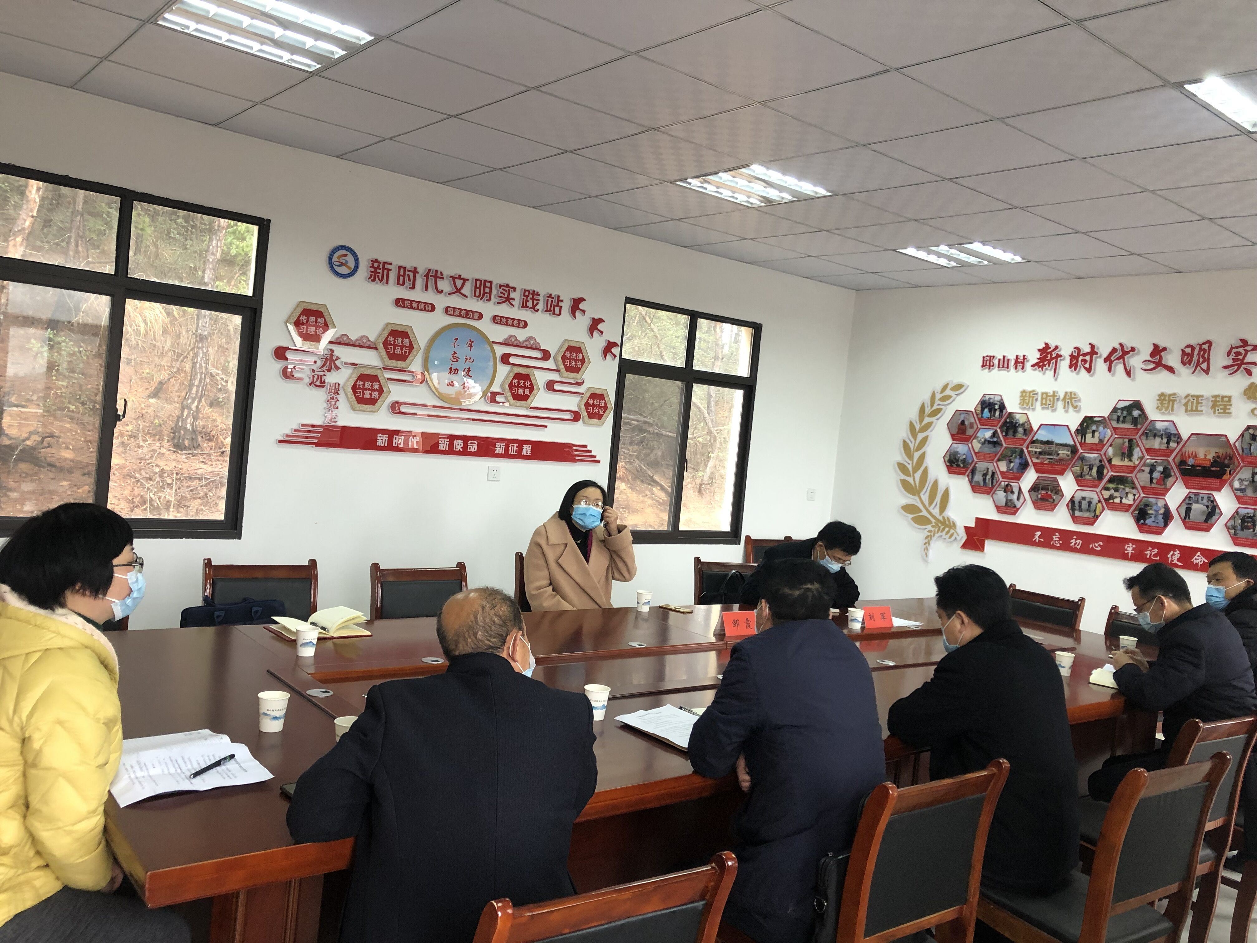 在邱山村党员群众服务中心会议室,党委负责人张文选汇报商会筹建工作情况。随后的调研过程中,邹霞详细了解梁子湖区商会建设工作。