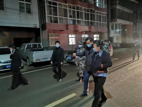 ? (本网讯)2月5日,农历小年夜,副区长、梁子镇党委书记吴丹、梁子镇党委副书记、镇长张海山带领镇禁鞭小组成员和巡查执法队员到集镇主要范围内开展禁鞭巡查和防疫宣传。