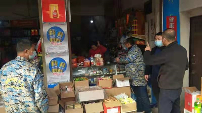 (本网讯)为加强涂家垴镇集镇禁鞭的安全管理,杜绝事故隐患,减少环境污染,维护公共和公民人身、财产安全。2月4日,涂家垴镇禁鞭工作领导小组组织政法办、应急办、派出所、集镇范围内村(社区)等成员单位联合出击对集镇范围内放鞭售鞭行为进行严查严办。对门口放有破旧烟花爆竹等残放垃圾进行清理,对集镇居民和农村村民进行禁鞭提醒,禁鞭宣传通告到户到人,对主干道沿线路段商铺进行突击检查,对违规售卖烟花爆竹的依法收缴,并对商家予以警告和打击,全镇实行部门联动,镇村合力,力争让全镇人民过上一个“环保春节”、“安全春节”和“文明春节”。