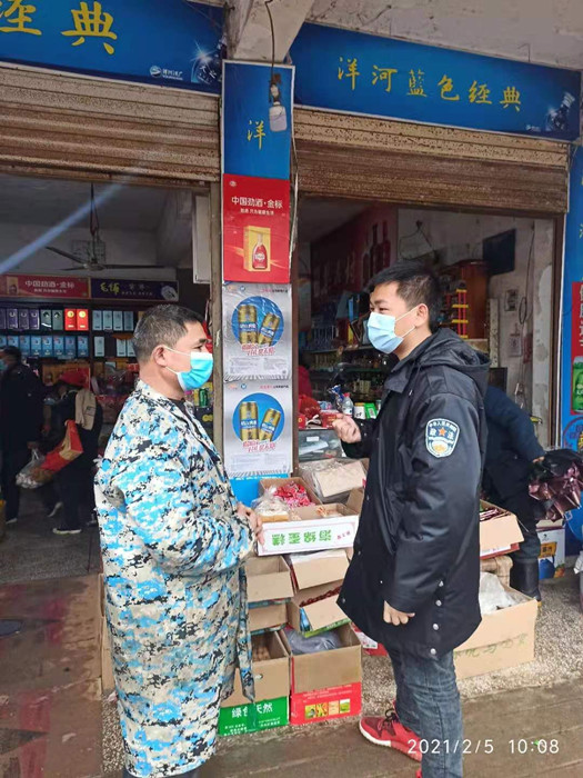 (本网讯)2月5日,根据涂家垴镇集镇禁鞭工作领导小组的统一安排,镇政法办、派出所等单位参加集镇新冠肺炎疫情防控和禁鞭日常巡逻。巡查督导宅俊街、涂镇街集贸市场等主干道及重点场所,劝导集镇居民、沿街商户正规佩戴口罩,少聚集、不扎堆,注意破除陈规陋习,培养文明乡风,切实提升居民常态化疫情防控及禁鞭意识。