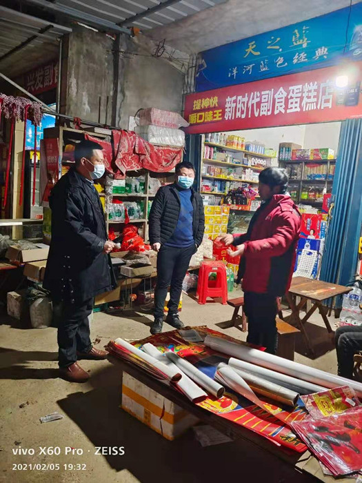 习俗小年,为维护全镇安定祥和,晚间,我镇政法办、应急办、派出所等联合出击进行夜间治安巡逻,并对集镇商户、沿街店主和居民宣传集镇禁鞭、疫情防控和平安创建保安全工作。
