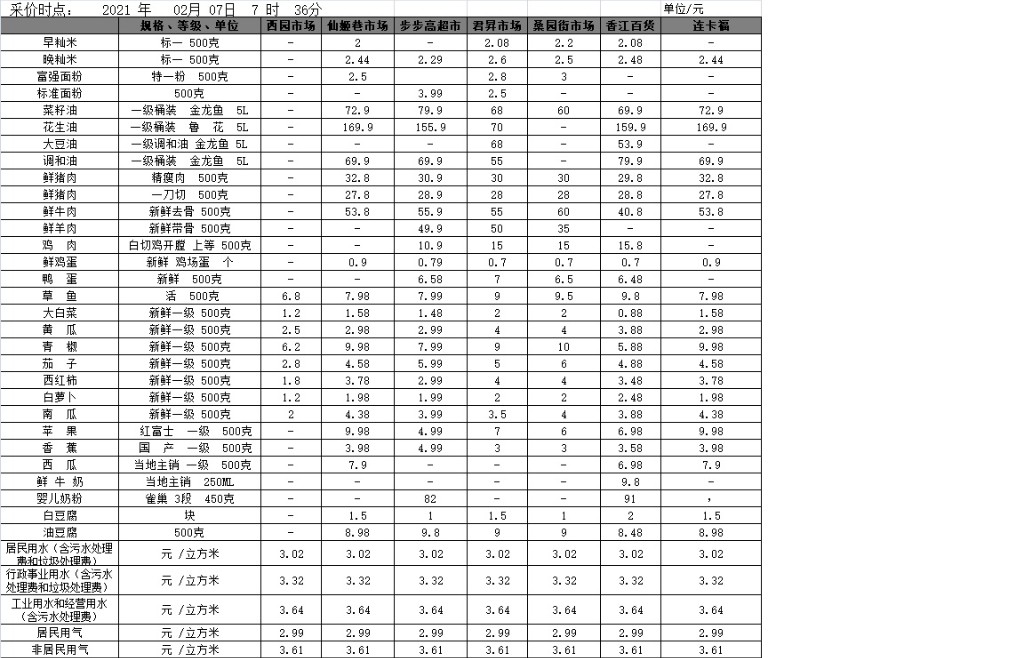 · 【物价】 2021-02-07衡阳市民生价格信息