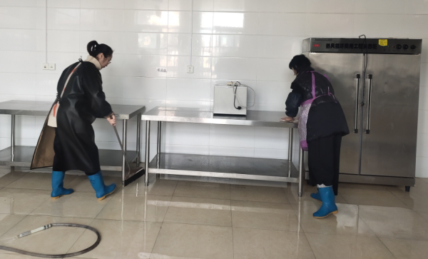 为了在新学期能够提供一个更加安全、卫生、整洁的厨房环境。我园近日,在园长姜婷的带领下,值班领导和值班教师对厨房进行了一次全面彻底的清洗。大家分工明确,扫除有序,针对厨房用具、工作台、餐具、地面等。再次,从面到角进行了细致的卫生清理,杜绝了假期期间厨房用具的细菌滋生,确保厨房用具的卫生安全。此次,常态化的开展厨房卫生大扫除工作,为疫情防控工作提供了多一重的保障。