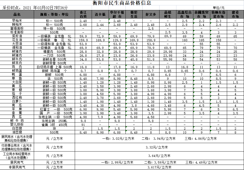 · 【物价】 2021-03-02衡阳市民生价格信息