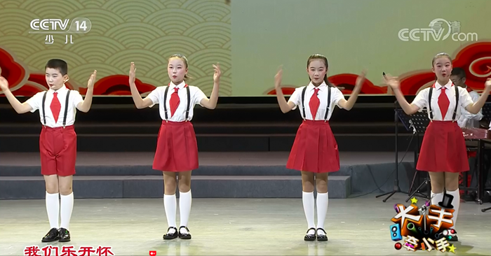 天津快板《我和我的祖国》内容紧扣时代主题、构思新颖独特,歌颂了祖国翻天覆地的变化,表达了孩子们对祖国的热爱之情。此次央视少儿频道《大手牵小手》栏目的节目是在全国少儿曲艺展演的三场36个节目中,经过多次选拔推送到该栏目演出的。