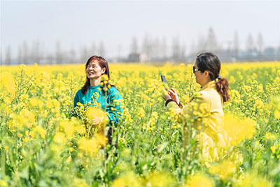 上周末,辛安渡成片油菜花,吸引不少观赏者拍照打卡。记者晏君摄