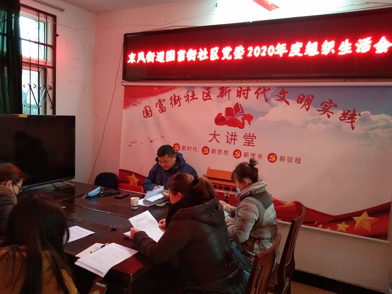 2月26日上午,东风社区党委召开2020年度组织生活会,东风街道主要负责人出席会议,东风社区党委书记主持会议。
