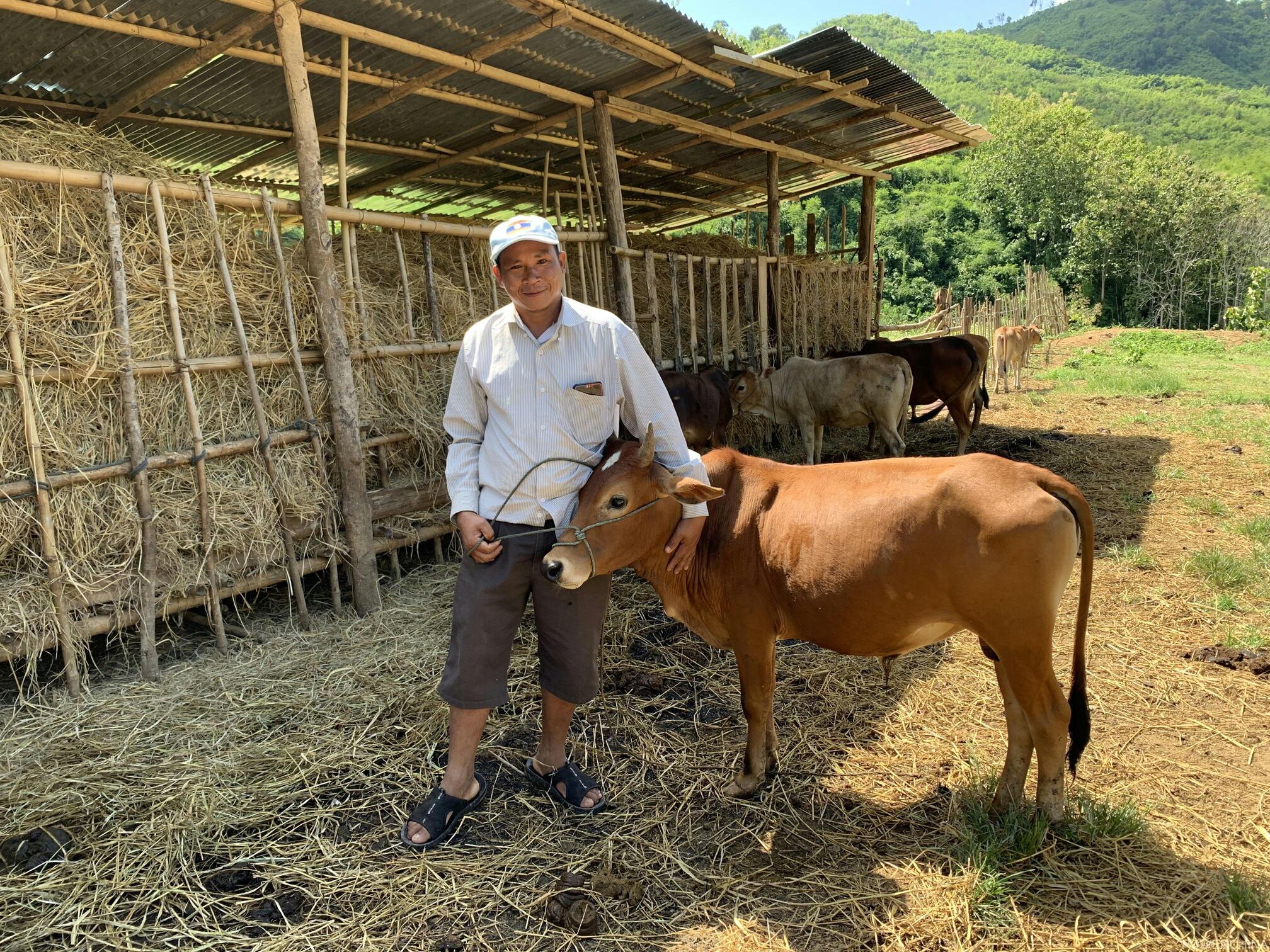 “从三年前搬迁到这移民新村,喜事就没断过。每家每户都是漂亮的二层吊脚楼,通水、通电、通路、通信号,还有配套的中小学、医务室、村共所和寺庙,还为学校捐赠桌椅板凳,教村里的孩子中文,给我们发果树苗,传授果树种植知识,现在又给我们发牛,以后的日子一定会越过越好。”劳康一路上都在高兴地说。