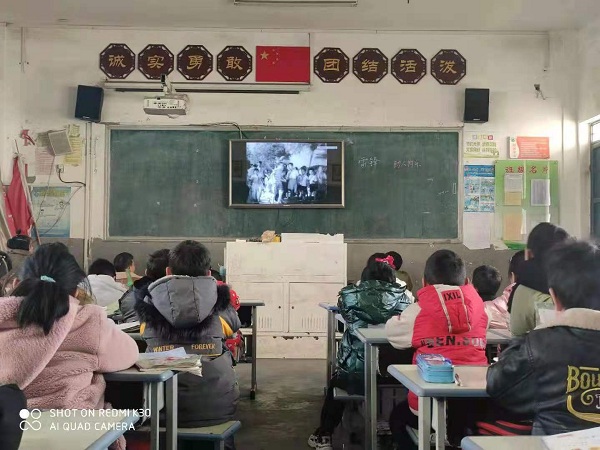 各班利用班会观看了《少年雷锋》这部电影。在观看之前,班主任为大家介绍了雷锋的生平,让队员们更多的了解了雷锋的生平。本次“学雷锋”活动还包括师生共学唱歌曲《学习雷锋好榜样》、举办“向雷锋同志学习,争当新时代好少年”黑板报、以及志愿服务活动等
