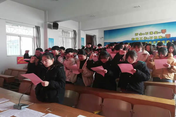 ?誓师大会上,优秀学生许静茹代表全体同学发言。她希望同学们珍惜自己的每一天,在离中考100天的时间里,勇敢的接受考验,盯着远方的目标,怀揣远大的理想,战胜艰难险阻,去取的中考的成功。同学们的宣誓把整个誓师大会推向高潮,许静茹的带领下,全体师生铿锵宣誓,表达自己迎战中考的信心和取得胜利的决心。