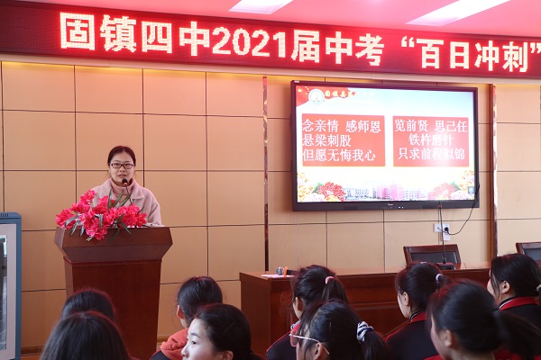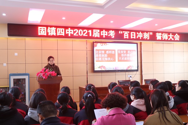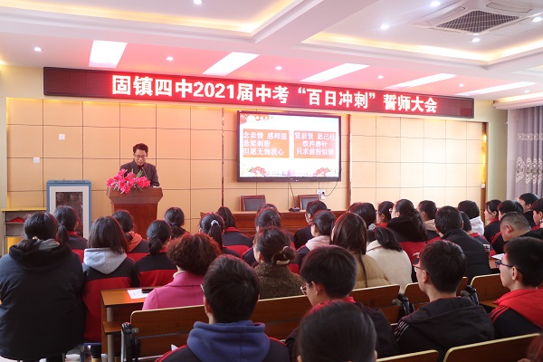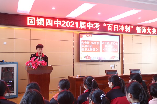 3月4日,是距2021届中考还有一百天的日子。为了鼓舞士气,激励九年级学生在剩下的100天内积极拼搏、全身心地投入到中考备战当中,固镇四中九年级全体师生齐聚多功能报告厅,隆重举行了中考百日誓师大会。大会由李莎莎老师主持。