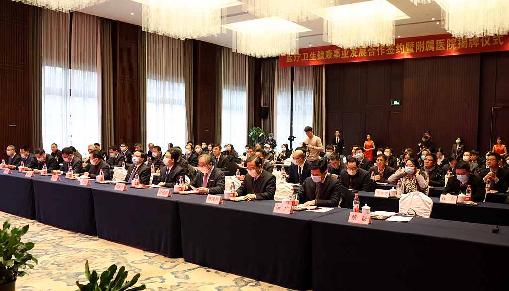 在签约挂牌仪式上,省委组织部副部长胡旭阳强调,医疗卫生事业是普惠民生,必须坚持以人民健康为中心。疫情的考验也迫切要求我们进一步构建完善医疗救治体系、提升医药研发能力、培养临床及科研人才,更好地筑起一道守护人民群众身体健康和生命安全的坚强防线。他指出,产学结合的目的是医疗能力提升,创新发展的核心是专业人才培养。双方要着重在学科建设上下功夫,共同培育若干个特色专科,全面提升医疗服务能力;要以社会需求为导向,以订单式模式培养专门人才,创新人才共建模式,争取形成更多的新技术、新业务,同时加强医德医风教育,培养一批医术精湛、医风高尚的医护人员。他强调,广大医护人员在疫情防控中、在医疗救治中作出了突出贡献,是新时代最可爱的人。要继续落实关心关爱医护人员的相关举措,特别是要服务好、保障好依旧奋战在防疫战线的医护人员,做他们的坚强后盾。