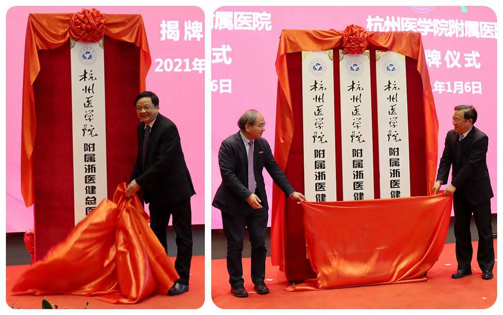 省委组织部副部长胡旭阳为杭州医学院附属浙医健总医院揭牌。杭州医学院党委书记吕建新和浙旅投集团党委书记、董事长陈祝毅共同为杭州医学院附属浙医健衢州医院、附属浙医健杭州医院、附属浙医健长兴医院揭牌。
