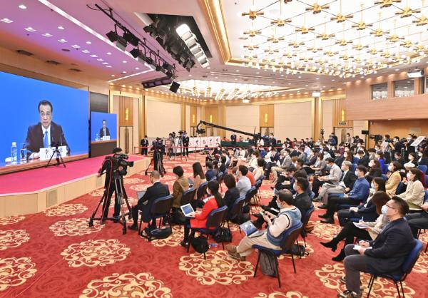 3月11日下午,十三届全国人大四次会议在北京人民大会堂举行记者会,国务院总理李克强应大会发言人张业遂的邀请出席记者会,并回答中外记者提问。新华社记者 陈晔华 摄
