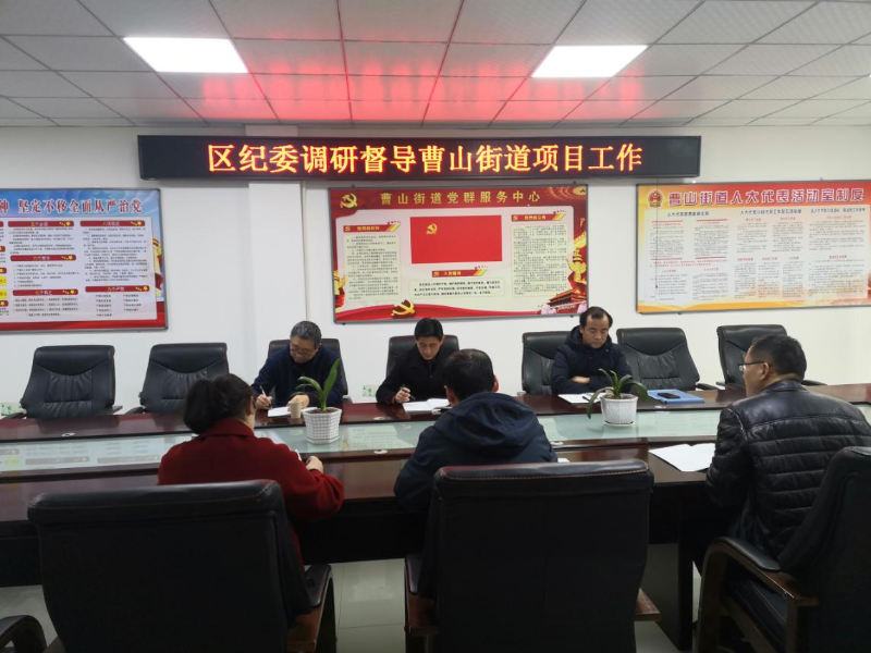 2021年3月12日上午区委常委、区纪委书记沈明星、区纪委常委江好昌、区纪委办公室主任高曙光,到曹山街道调研督导重点项目征地拆迁工作。沈明星同志认真听取了曹山街道2020年度项目情况以及近期征地拆迁项目推进情况汇报,详细了解了存在的问题和困难,研究解决问题的对策和方案。沈明星同志对曹山街道的项目工作表示肯定并提出三点要求:一是正确认识征地拆迁的重要性,务必全力以赴按时完成征迁工作任务;二是加强对重点项目的廉洁风险防控,紧盯重点领域、重点岗位、关键环节存在的廉政风险点,落实到具体行动中,精准监督、跟进监督、全程监督;三是研究好相关政策,保障群众合理诉求,依法依规推进拆迁工作,助推项目落地。