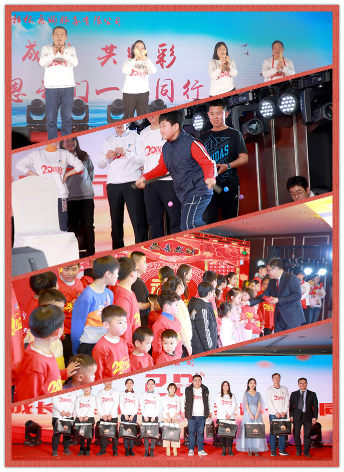 当天下午,会场华灯璀璨,高朋满座。来自公司和分公司的员工及家属近三百人欢聚一堂,共庆公司成立20周年生日。