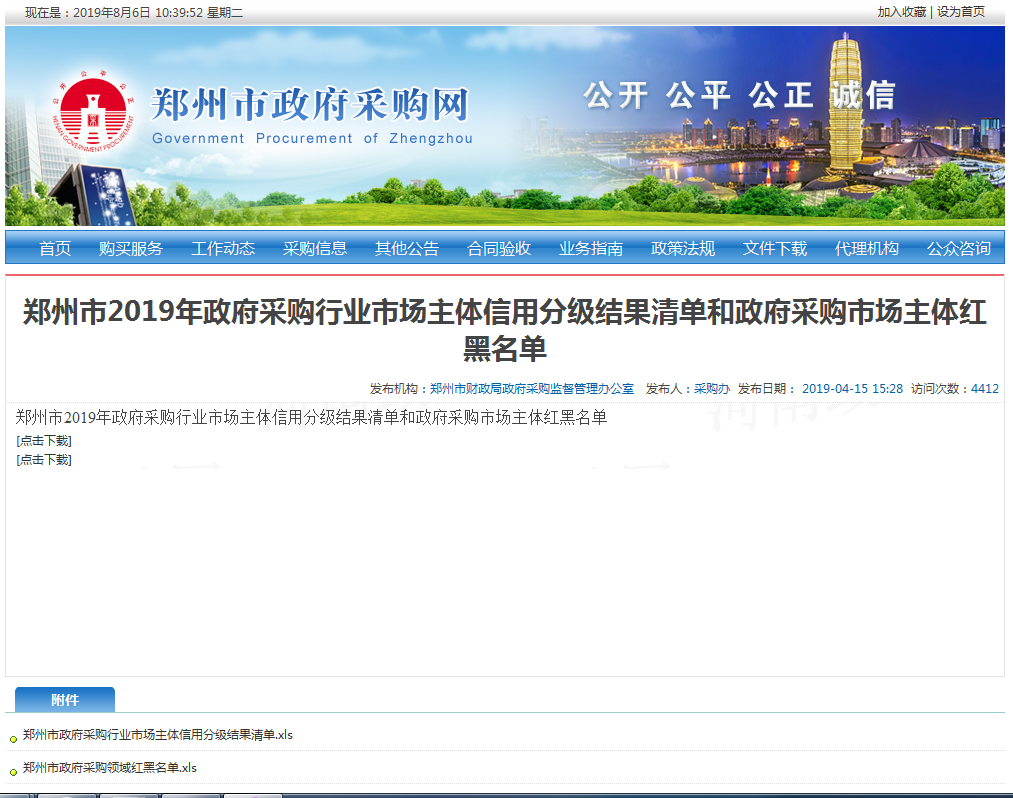 喜讯|我公司在郑州市2019年政府采购行业市场主体信用分级结果中被评为守信单位,同时在政府采购领域市场主体红名单中名列榜首