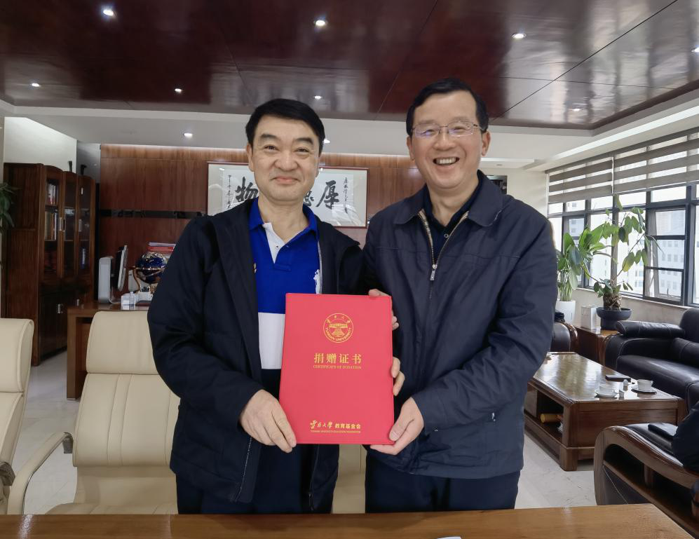 2021年3月31日,为支持母校“一流大学”建设,激励云大青年学生刻苦学习、奋发向上,云南大学信息学院无线电系1979级优秀校友、云南大学企业家校友会会长、云南贝泰妮生物科技集团股份有限公司董事长兼总裁郭振宇博士慷慨解囊,捐资500万元(每年100万元)设立云南大学“汉生奖学金”。云南大学常务副校长李晨阳、云南大学教育基金会秘书长胡剑锋代表云大与郭振宇校友在云南贝泰妮集团共同签属捐赠协议。