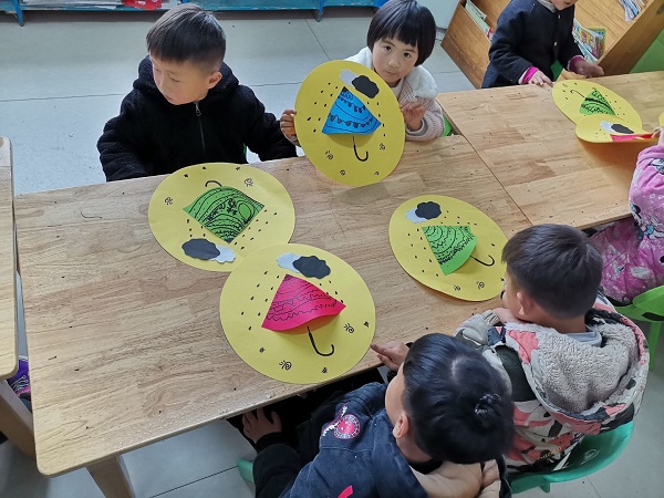 小朋友们在了解清明节的来源和习俗后,也进行了一系列的美工活动。小班的小朋友们用彩泥,彩纸等工具来装饰鸡蛋。中班小朋友用卡纸制作的小雨伞。大班小朋友用颜料制作了的美味的青团。