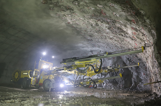 在地下厂房施工现场,开挖机械隆隆作响,运输车辆来往穿梭,工人们严格按照标准有序施工,一片繁忙大干景象。由于地下洞室爆破开挖、喷锚支护工程量大,且情况复杂,项目部转变施工方式,购置了三台世界先进的阿特拉斯多臂钻机,进行地下洞室的石方爆破钻孔和系统锚杆钻孔,并采用遥控湿喷机械手进行喷锚作业,大大提高了喷射混凝土质量,降低了喷射混凝土回弹量,优化了作业环境。在钢筋和小导管加工中,项目大量引进使用数字化加工平台,确保了精度和速度。“按照公司领导的要求和分局的安排,五岳项目积极探索水电施工方式的转型升级,我们以隧道机械化施工系统为依托,依靠机械专业化、智能化平台,在实践中进一步提高施工效率,确保项目的优质履约”。项目经理王竹波说。