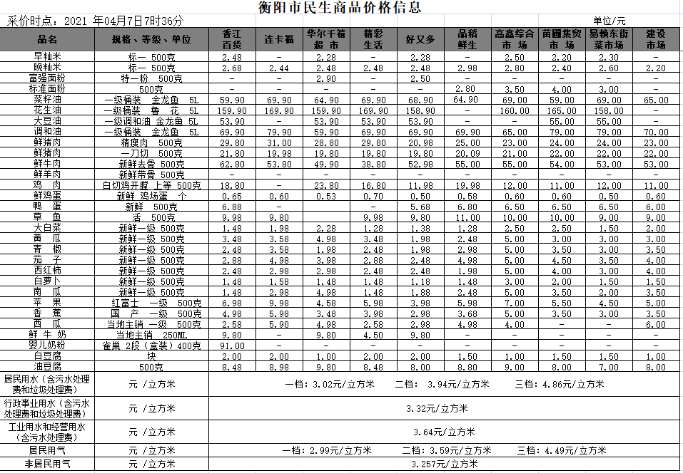 · 【物价】 2021-04-07衡阳市民生价格信息