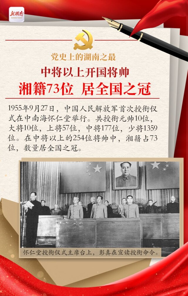 · 党史上的湖南之最丨中将以上开国将帅湘籍73位,居全国之首