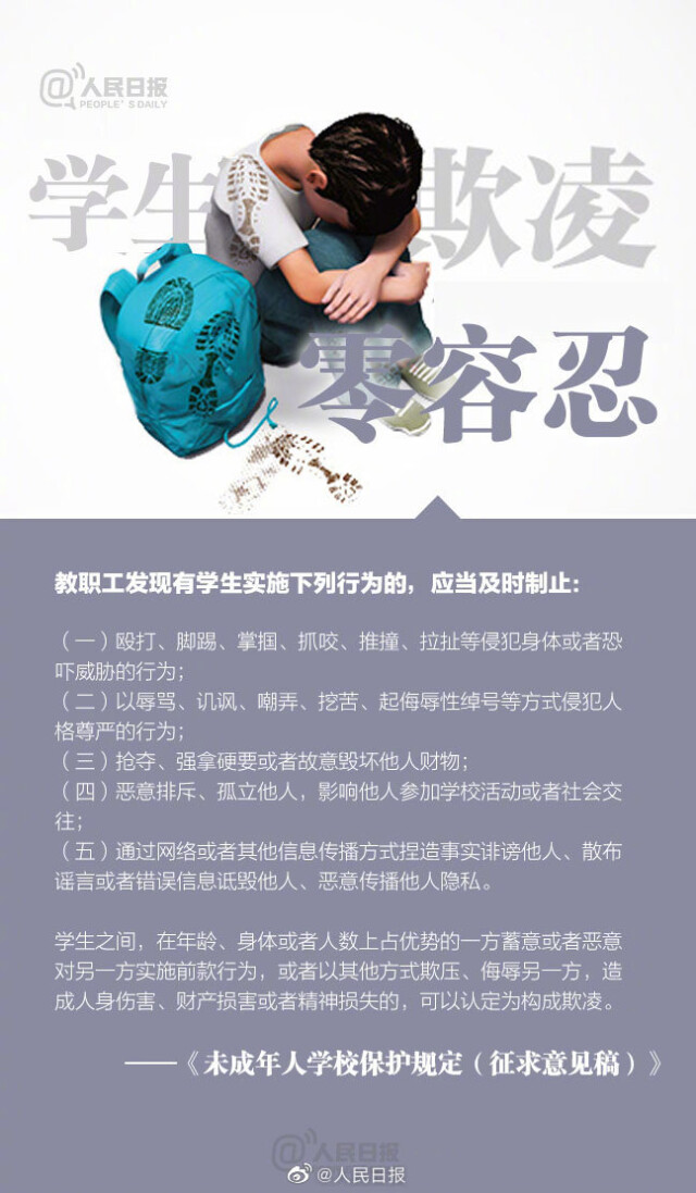 教育部4月6日发布公告,就《未成年人学校保护规定(征求意见稿)》公开征求意见。意见稿就预防欺凌、防治性侵等多方面保护机制进行了明确规定。