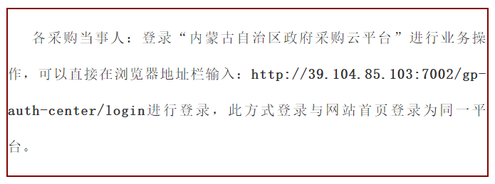 因内蒙古自治区政府采购网出现不可登录的情况,接自治区通知:
