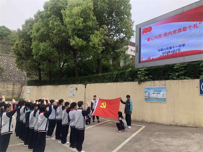 4月7日上午,十一中组织学生开展了“童心向党·我向党旗敬个礼”主题实践活动。