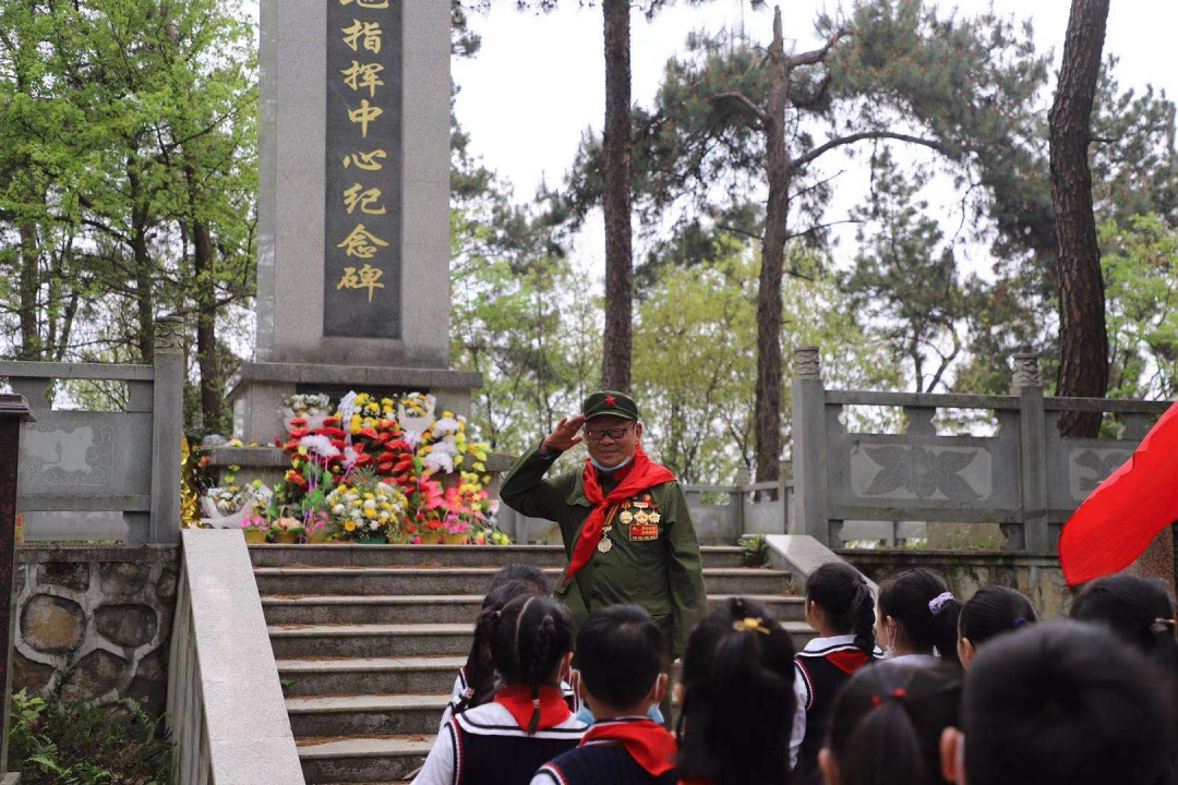 又是一年清明际,又是追思纪念时。3月29日,濠塘社区联合东方红小学,前往麻羊垴鄂南抗日根据地指挥中心旧址开展“缅怀革命先烈,传承红色基因“活动。活动中开展了“老兵讲堂”——抗战老兵讲述红色抗战故事,社区抗战老兵郑云昌讲述抗战中的亲身经历和缅怀那些牺牲的战友,对少先队员们进行革命传统教育。?