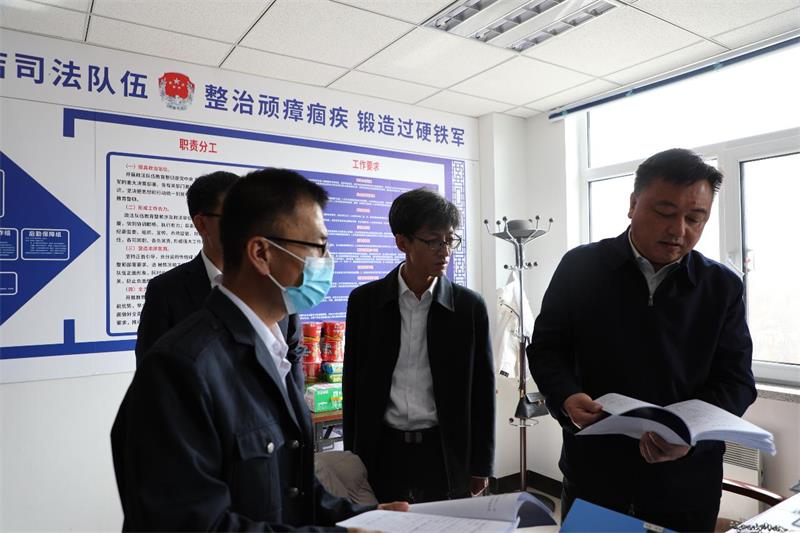 近日,县委书记、县政法队伍教育整顿领导小组组长初洪波调研长白县司法局政法队伍教育整顿工作开展情况,县教育整顿领导小组副组长、县政法委书记徐路参加活动。