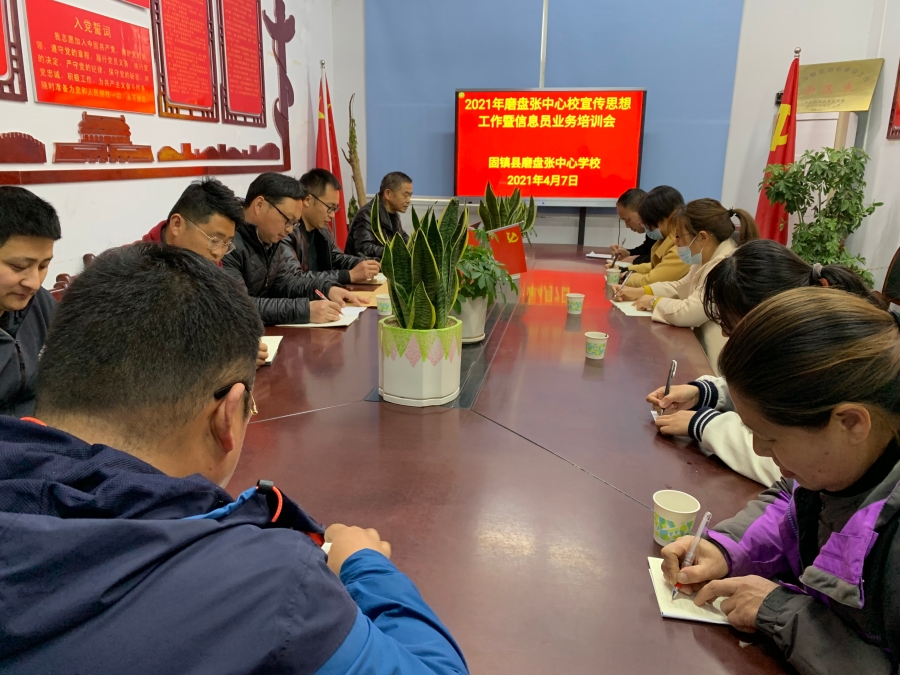 为进一步加强磨盘张中心校教育信息宣传工作,2021年4月7日下午,磨盘张中心校召开了信息宣传业务培训会,会议由杨胜海校长主持。