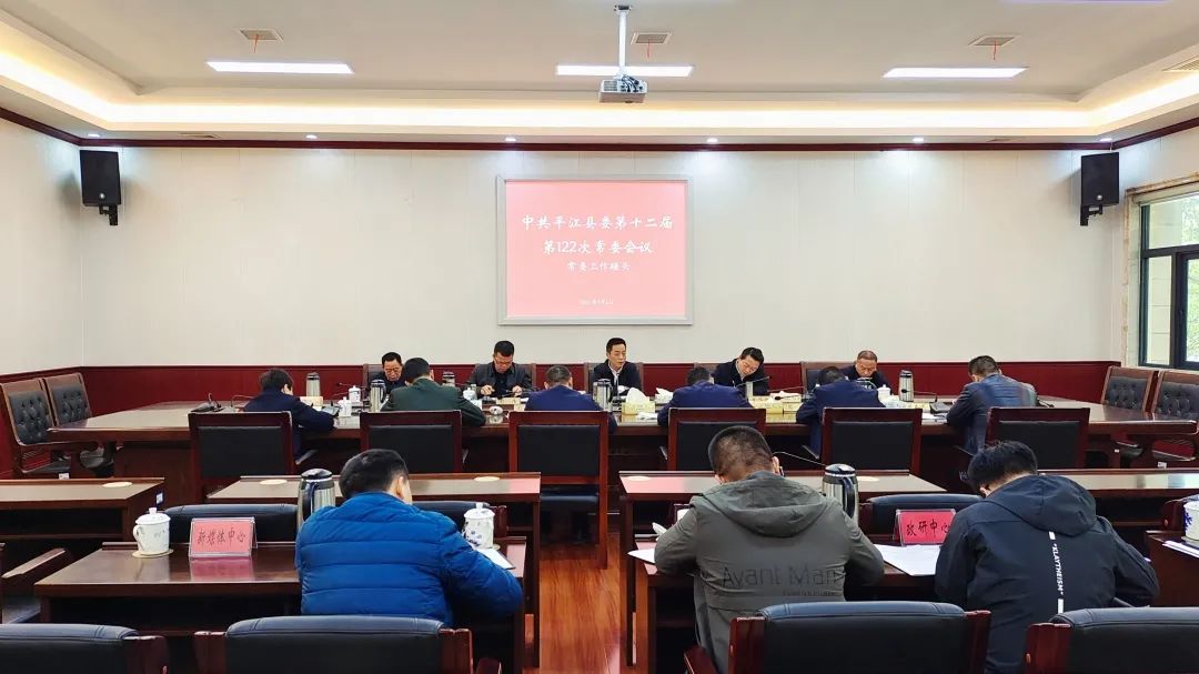 4月6日,县委常委会召开中共平江县委第十二届第122次常委会会议,听取县委各常委、县人大常委会主任、县政协主席一季度重点工作情况及下阶段工作安排汇报,研究部署当前重点工作;审议通过《中共平江县第十二届纪律检查委员会第六次全体会议工作报告》《平江县2021年度基干民兵编组方案》。县委书记汪涛主持并讲话。
