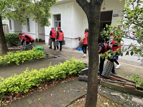 活动现场,志愿者们劲头十足,大家身穿志愿服,手拿扫帚、火钳、垃圾袋等清扫工具,铲除杂草、洁理垃圾,对福利院进行了认真细致的打扫。