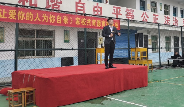 2021年4月27日,固镇县濠城初级中学邀请到善朝教育集团丁书承老师,为全校师生及家长做主题为“让爱你的人为你自豪”家校共育德育报告会。
