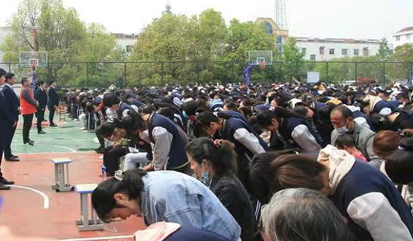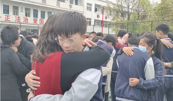 互动环节,当学生与老师、家长互相拥抱,大声喊出:“老师,谢谢你!”“爸爸妈妈,我爱你们!”老师您辛苦了”“爸爸妈妈您们辛苦了”等肺腑之言时,同学们、老师们、家长们都潸然泪下,师生情、父母爱在这一刻得到了充分的诠释。孩子们的鞠躬礼、孩子们的深情拥抱、孩子们的真挚感谢,把会场的气氛推向了一个又一个的高潮,在场的师生和家长们都洒下了感动的泪水。