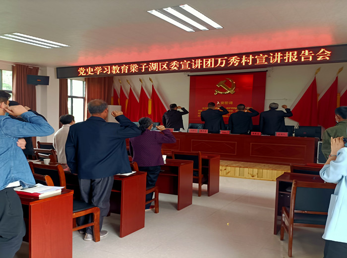 (本网讯)4月28日上午,鄂州市融媒体中心梁子湖频道总监黄法斌到涂家垴镇万秀村举行党史学习教育宣讲报告会,会议由万秀村支部书记主持,万秀村全体党员参加。