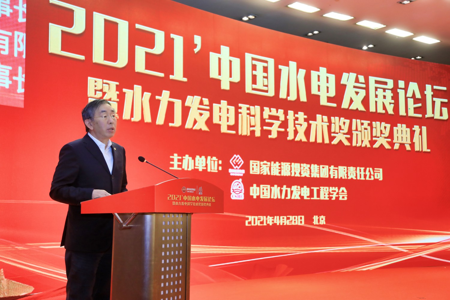 4月28日,一年一度的水电界盛会——2021年中国水电发展论坛暨水力发电科学技术奖颁奖典礼在京召开。公司党委书记、董事长晏志勇应邀出席会议并为获奖代表颁奖,党委常委、副总经理刘源一并出席并参加会旗交接仪式。