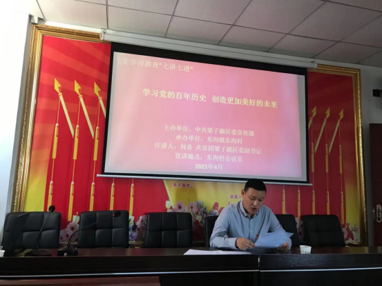 (本网讯)4月30日上午,团区委副书记到东沟镇东沟村开展党史学习教育专题宣讲,东沟村党支部书记主持,村“两委”成员及全体工作人员参加。