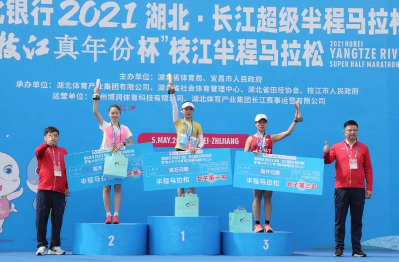 经过激烈角逐,来自福建的钱鼎彬一路领先,以1小时4分1秒的成绩夺得半程马拉松枝江站男子组冠军,来自湖北的伍玲以1小时21分23秒的成绩获得女子组第一名。